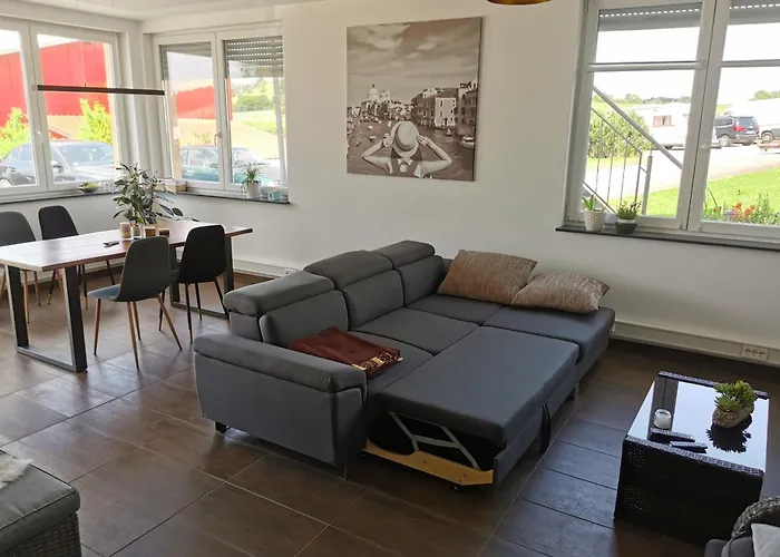 Ferienwohnung Mit Garten Und Terasse Munsingen lägenhet erbjuder ett komplett kök samt rum med sitthörna och plattskärms-TV med satellitkanaler. Lägenheten ligger ungefär 3 km från Seeburg.